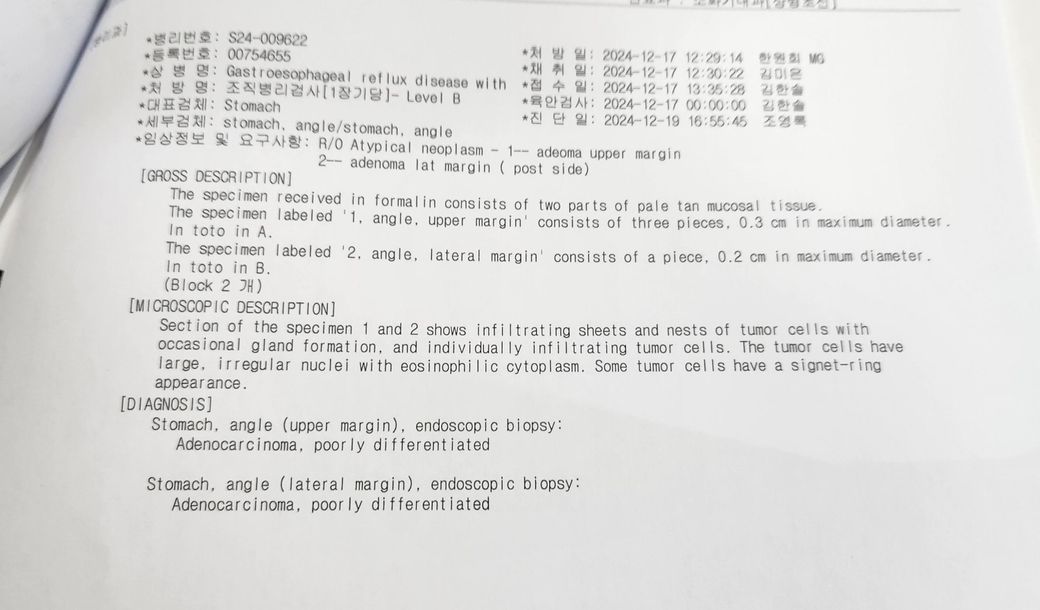 오늘 위 선암 진단 됐어요 진료실에서 그냥 선암이다 그러시면서 나이를 보더니 아직 젊은 편이다 나이가 많으면 내시경으로 재거하고 지내면 되는데 젊어서 절제술 해야 된다고 하셨어요