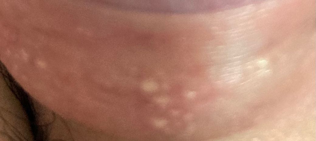 특징적으로 귀두 와 음경의 경계부위나 귀두의 바로 아랫부분에 오돌도톨하게 분홍색 혹은 하얀색 구진들이 생깁니다.