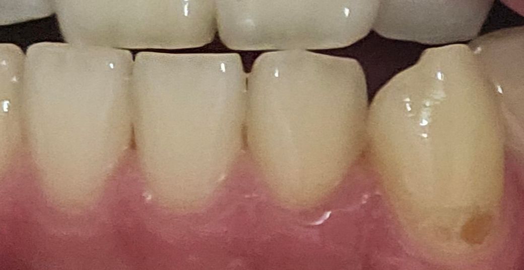 사진에 보이듯 갈색으로 원형인 무언가가 생겼는데, 이게 충치인가요? 아니면 그냥 착색된 건가요? 근 1년간