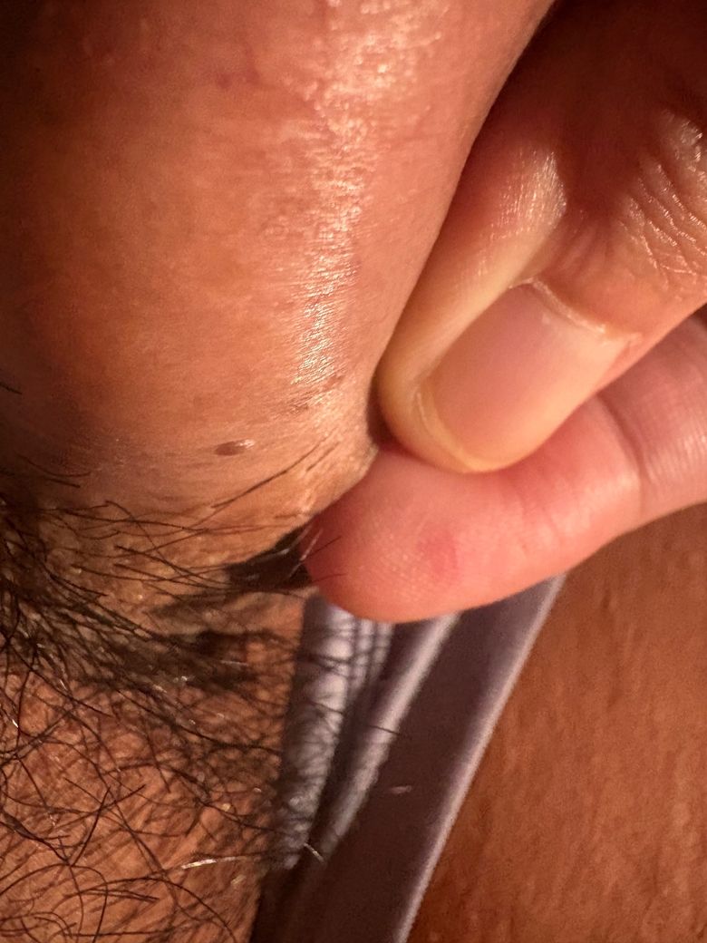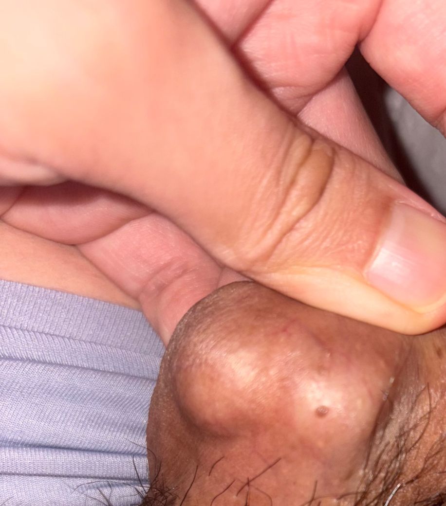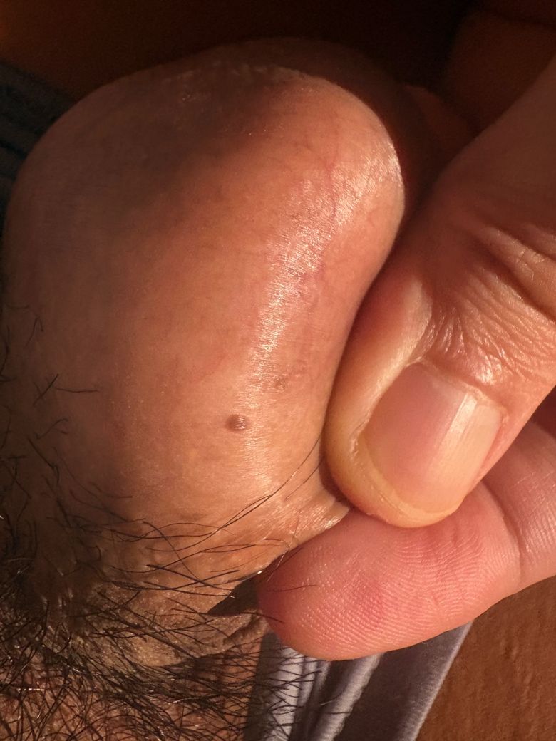 형태적으로는 다음 가능성이 더 높습니다. 첫째, 음낭에 흔한 혈관성 병변(혈관각화종). 둘째, 색소성 모반. 특히 혈관각화종은 검거나 자주색, 약간 튀어나오고 여러 개 생기는 특징이 있어 현재 사진과 가장 부합합니다. 이는 바이러스성 질환이 아니므로 전염성은 없습니다.