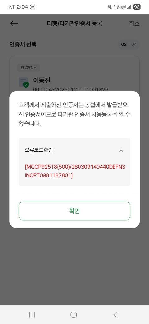 농협이 아닌 다른 금융기관에서 공동 인증서를 발급받으셔야 합니다. 금융인증서가 아닌 공동인증서를 발급받아야 서민금융진흥원에서 사용가능 합니다.