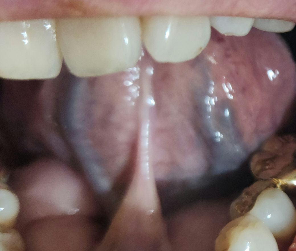 문득 오늘 보니 혀밑이 양쪽으로 파란색으로 u자모양으로 있는데