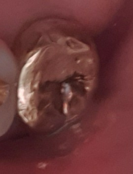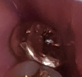 신경치료하고 크라운씌운지 한달도 안된 골드크라운 교합면이 저렇게 까만걸 발견했습니다..
