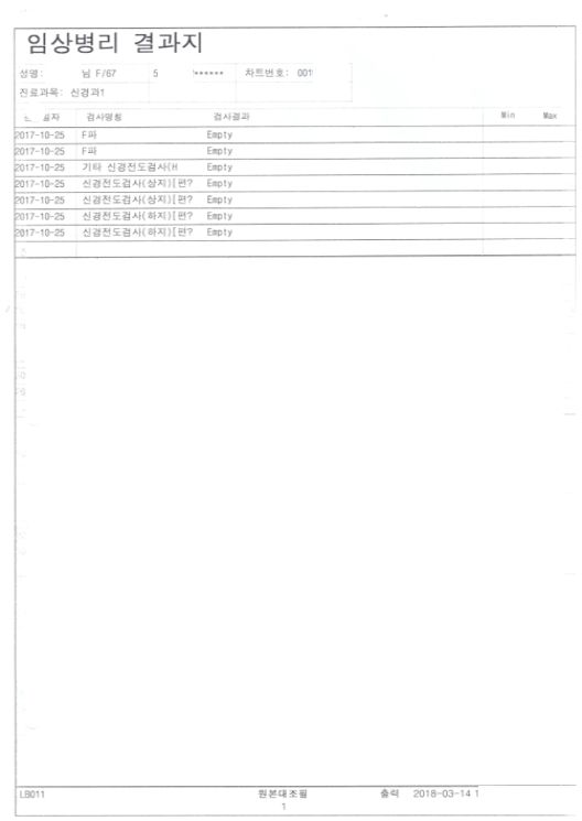 결과지를 발급받았는데 검사명칭만 나와 있는데 원래 이렇게 나오는건지