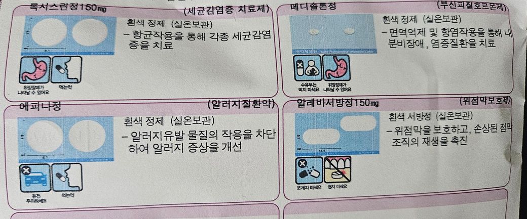 딱히 피부염이 생길만한 원인이 없는 상태였기에 주사 피부염일 수 있다는 진단을 받고 사진과 같은 약을 일주일 처방받았는데요.
