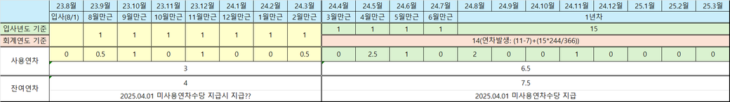 회계년도 기준 미사용연차에 대해서는 회계말 다음날인 2025년 4월 1일자로 지급의무가 발생되어