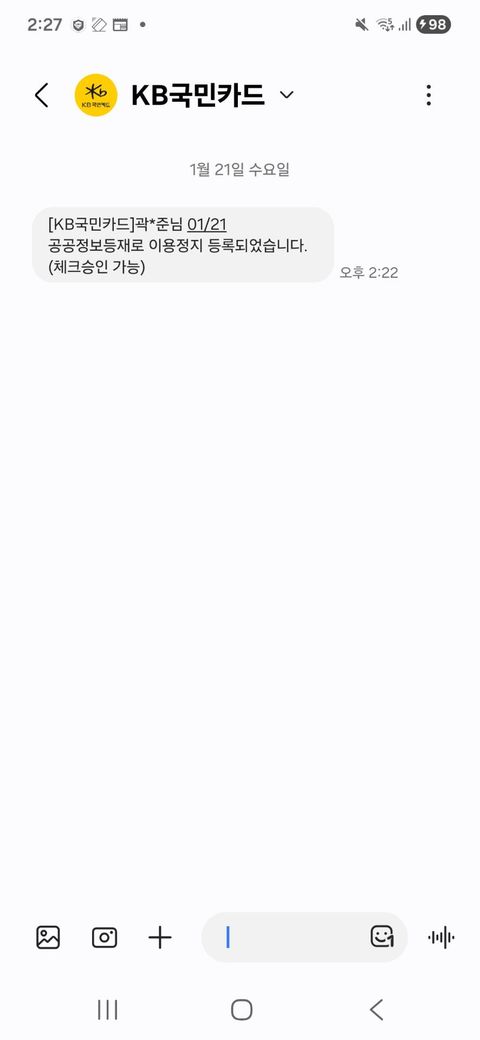 공공정보 등재로 이용정지 등록되었다는 뜻은 신용정보원에 공공정보가 올라가 있다는 의미이며 연체금 장기 연체, 개인회생이나 파산, 신용회복 진행 또는 이력 있는 경우 채무불이행 정보가 있고 등재되면 통신 신규 개동 안되고, 할부 대출 안되며 일부 서비스는 자동 이용정지 될수도 있는데 이를 공공정보 등재로 이용정지라고 뜨는 겁니다. 케크승인 기능은 완전 차단은 아니며 개별 심사는 가능하다 또는 체크나 현금성 거래는 가능하다는 의미입니다. 그래서 체크카들 결제, 선불 또는 보증금 기반 이용, 직원이 직접 심사하는 예외 승인 일부 통신사 금융사의 조건부 개통은 가능합니다.
