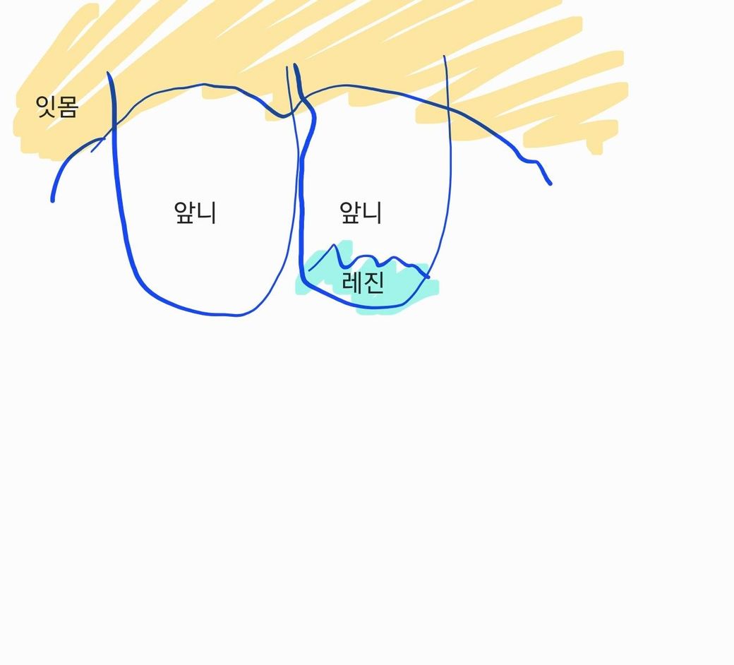 앞니 대분니 한 쪽 밑부분 파절 후 레진으로 떼웠습니다 중앙선이 심각하게 안 맞고 단차가 심해 1차로 치과에 재방문해 레진 모양을 다듬었어요 그래도 치아모양이 많이 울퉁불퉁하고 치아 모서리가 네모낳게 끝나 혀에 닿으면 찔리는 느낌이 들어 2차로 갈러 갔어요