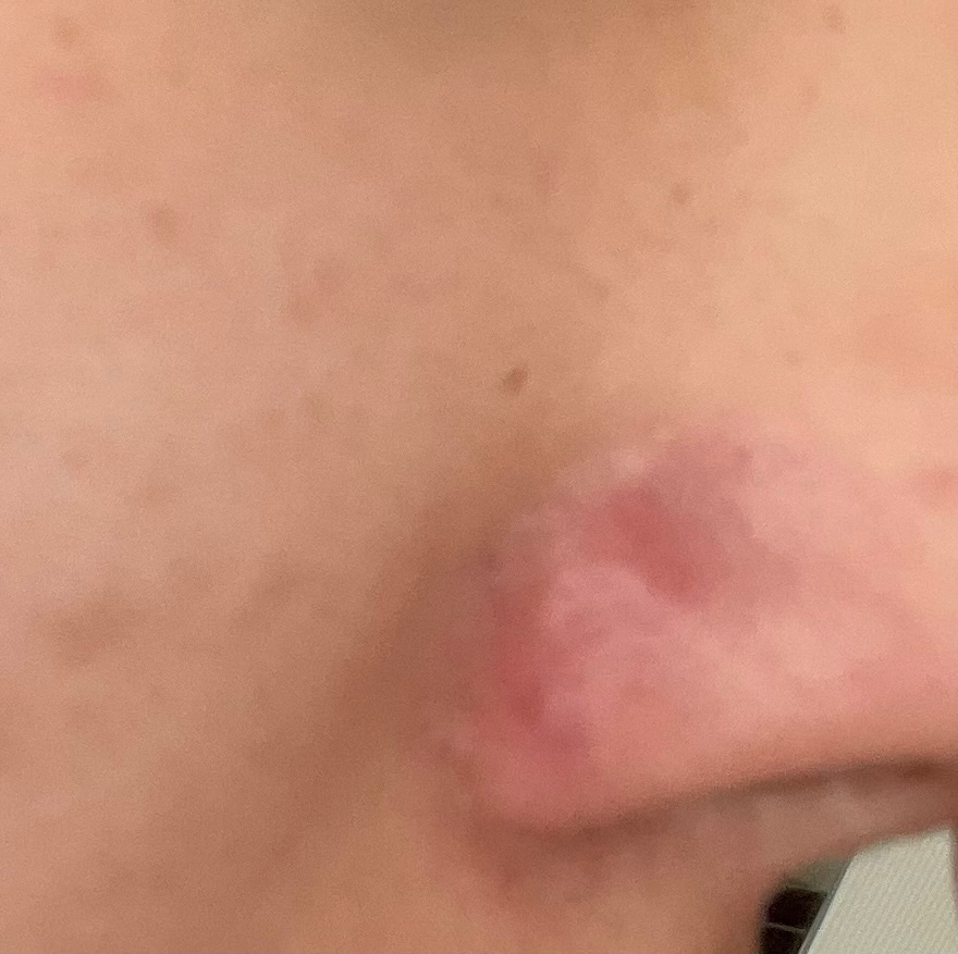 염증이 생긴 것은 맞는 것 같습니다. 모낭염은 아니겠지만 결국 항생제 치료를 일단 시작해 봐야 될 것 같구요. 사진이 워낙 흐려서 피부과에서 다시 한번 확인을 해봐야겠습니다.