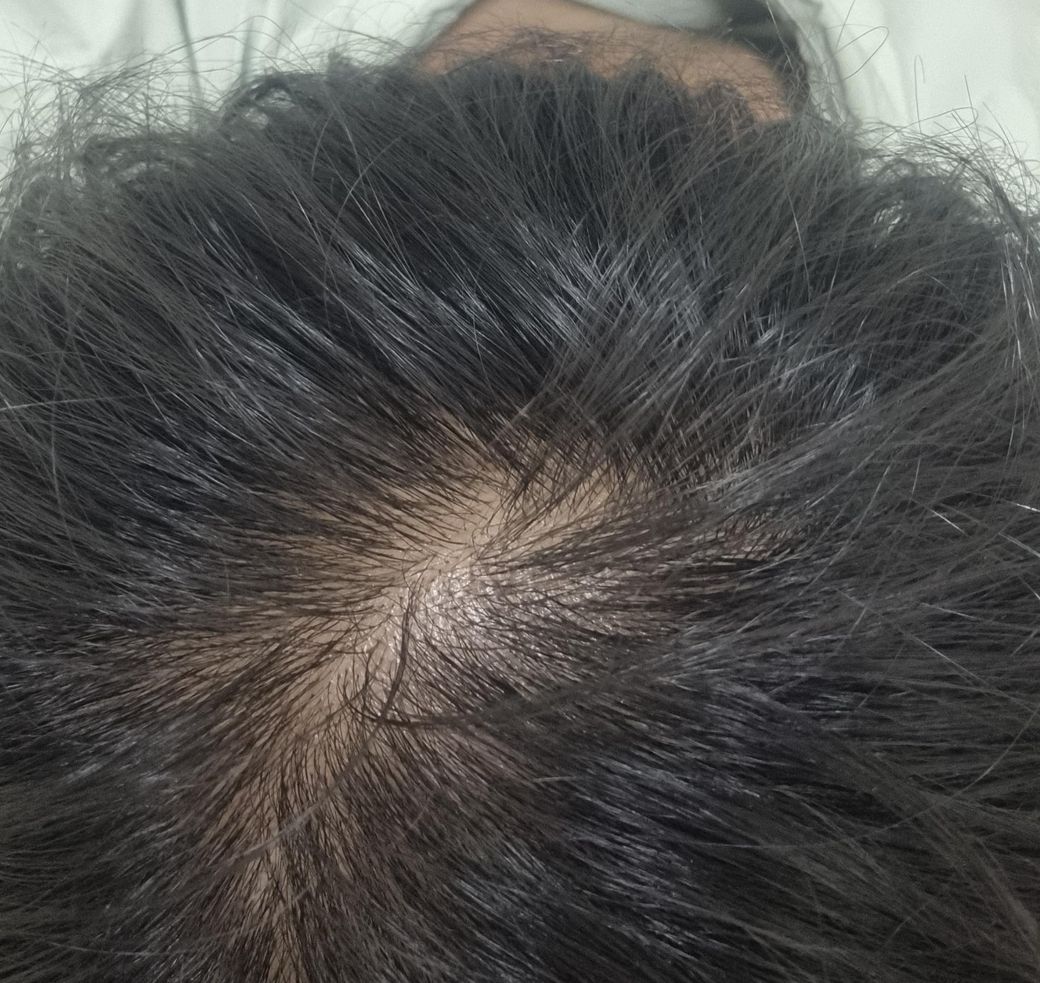아직까지 심각한 정도는 아닌데 정수리 부분이 다른 곳에 비해서 살짝 비어 보이기는 합니다 원래 정수리 부분이 그러실 수도 있겠지만 나중을 대비해 관리하시면 좋습니다.