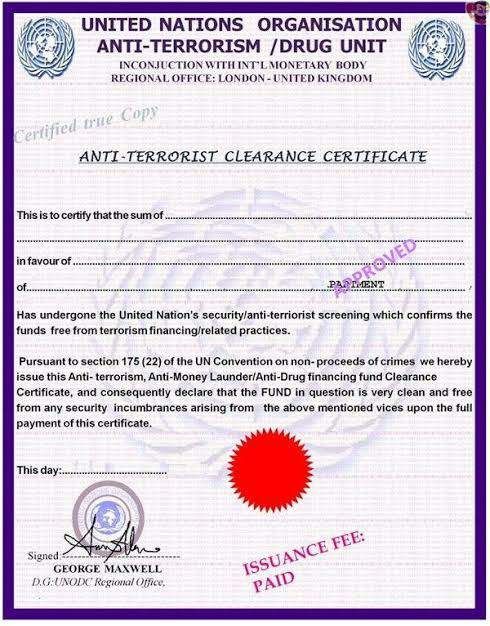 질문하신 내용에 대하여 아래와 같이 답변 드립니다.해당 사안은 유엔 기구의 마약 관련 조직에서 해당 자금은 테러나 마약이 관련되어 있지 않음을