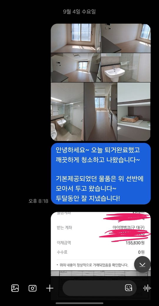 9/8 다음 임차인 입주예정이니 보증금 받아 전달해주겠다고 합니다.