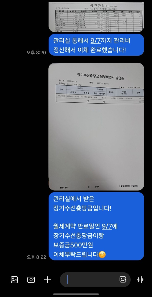 관리실 통해 9/7까지의 관리비 정산 마쳤습니다.