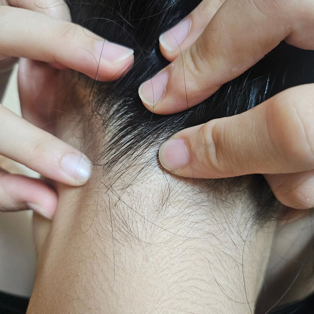 머리 감다가 뒷목의 윗부분, 머리랑 연결되는 부분에 고개를 숙였을 때 살짝 멍울인지 혹같은 느낌이랑 만지면 통증도 살짝 있어요.