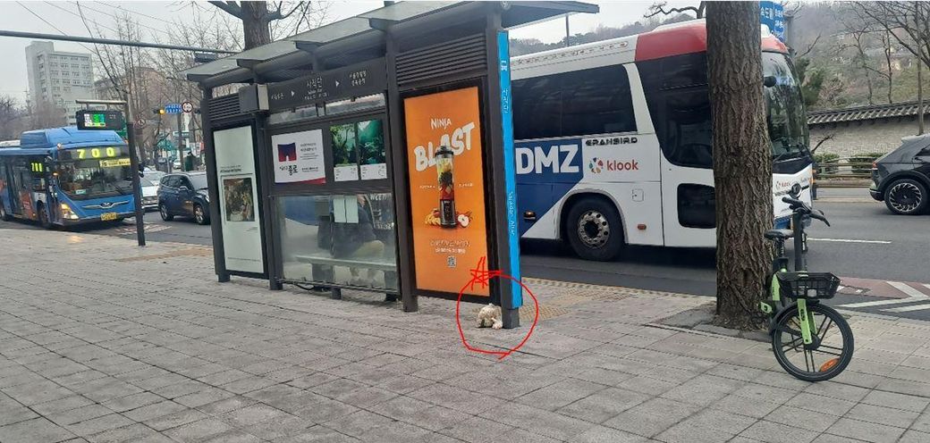 오늘 일 마치고 시내 버스에서 내리는데 시내버스 정류장 옆에 이상한 물체가 보여