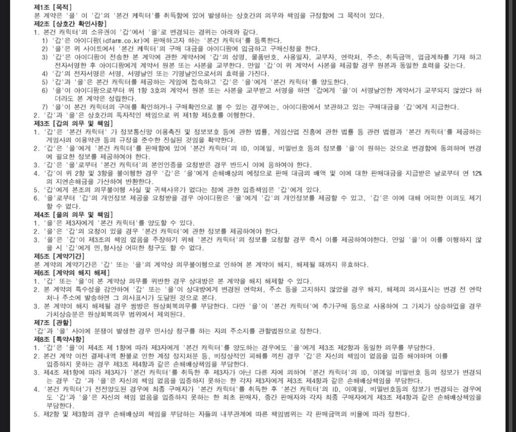 계정거래 당시에 2대주와 중계업체에서 작성한 전자계약서를 같이 첨부하겠습니다