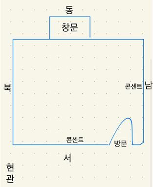 저 같으면 좌측 벽에 창문쪽으로 머리를 두고 침대위치를 배치할 것이고 전원이 필요한 것은 서쪽 콘센트나 남쪽에 있는 콘센트를 멀티텝을 이용해서 연장하여 침대쪽으로 연장해서 사용할거 같습니다.
