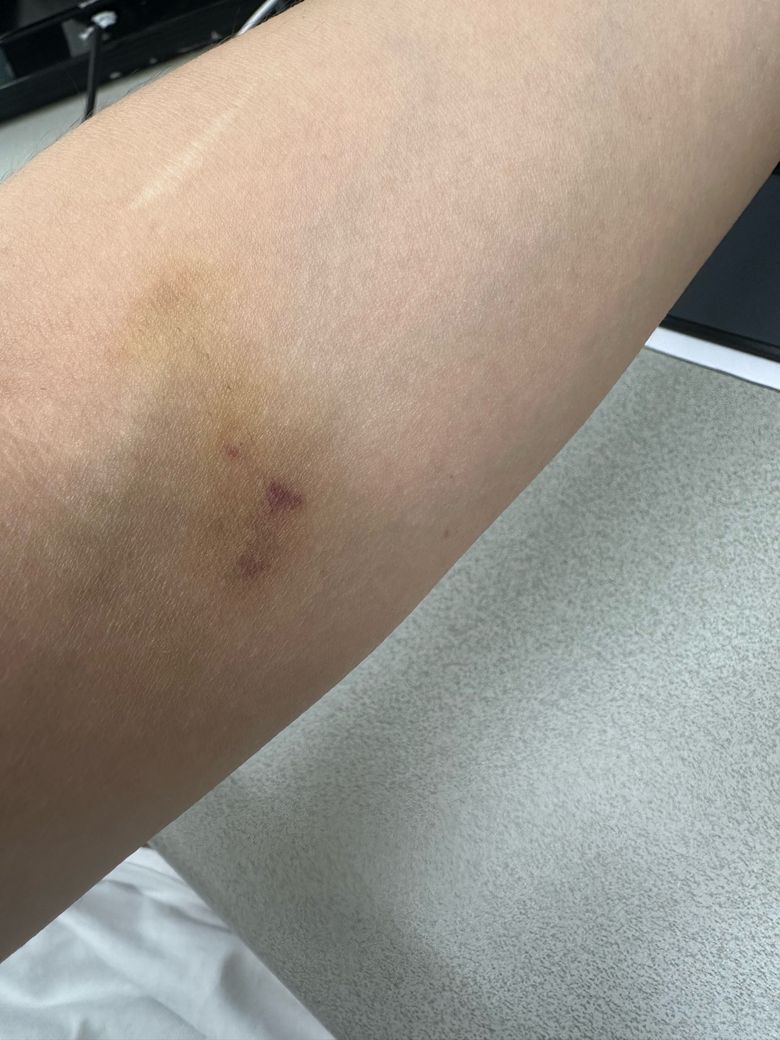 저번주 토요일 아침에 건강검진으로 피를 뽑았는데 현재 6일이 지났는데 몇일전부터 노란색으로 변하고 오늘 안쪽에 피가 고여잇는듯이 그러네요