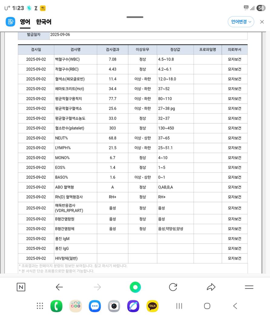 생리를 하는 여성의 경우는 채혈시기에 따라 일부 빈혈이 관찰되기도 합니다.