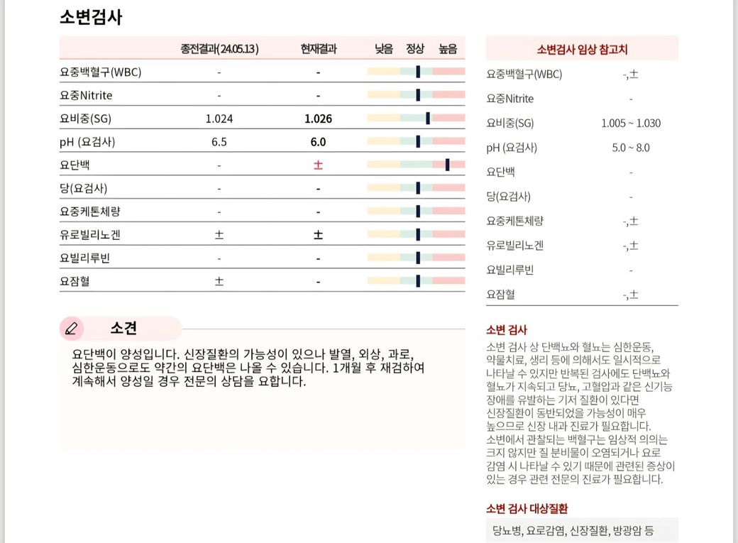 요단백이 +/- 로 나온 것은 소량의 단백뇨가 있었음을 의미하는데, 이는 검체가 오염되었을 가능성도 있습니다. 그렇기에, 추후 소변검사 재검하여 상태 재평가 해보길 바랍니다. 답변 도움되었기 바랍니다. 감사합니다