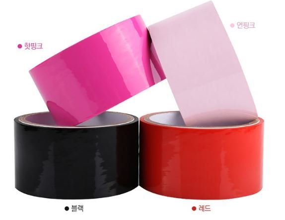 위 테이프는 성인용품에 쓰이는 테이프인데, 테이프 자체의 접착력은 없으나 테이프와 테이프끼리 접촉했을 때 마찰에 의한 접착력이 발생하는 제품입니다.(랩핑포장지 같은느낌)