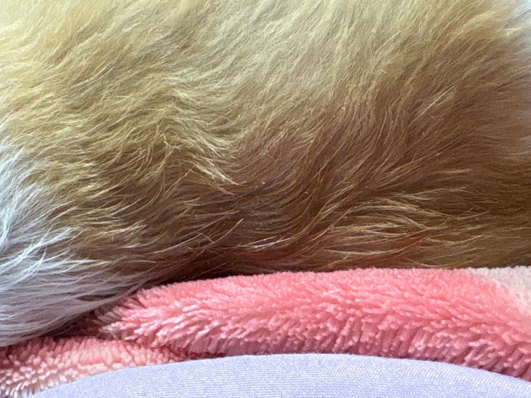 강아지 외부구충제약 리펠로액을 발라줬어요 저번에는 하얀가루가 보이지 않았는데 오늘 2회차 발라주고 시간이 좀 지나니깐 막 이렇게 하얀가루들이 일어났는데 왜그런건가요...?