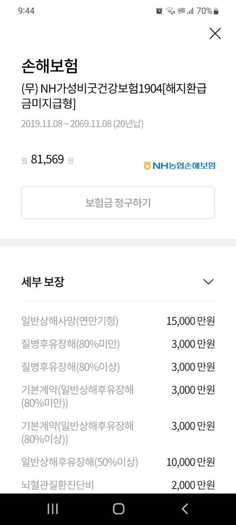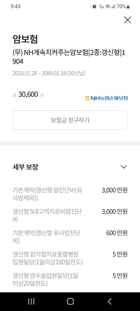 그외 농협 역시 갱신형보험이라 갱신주기마다 보험료가 인상되고