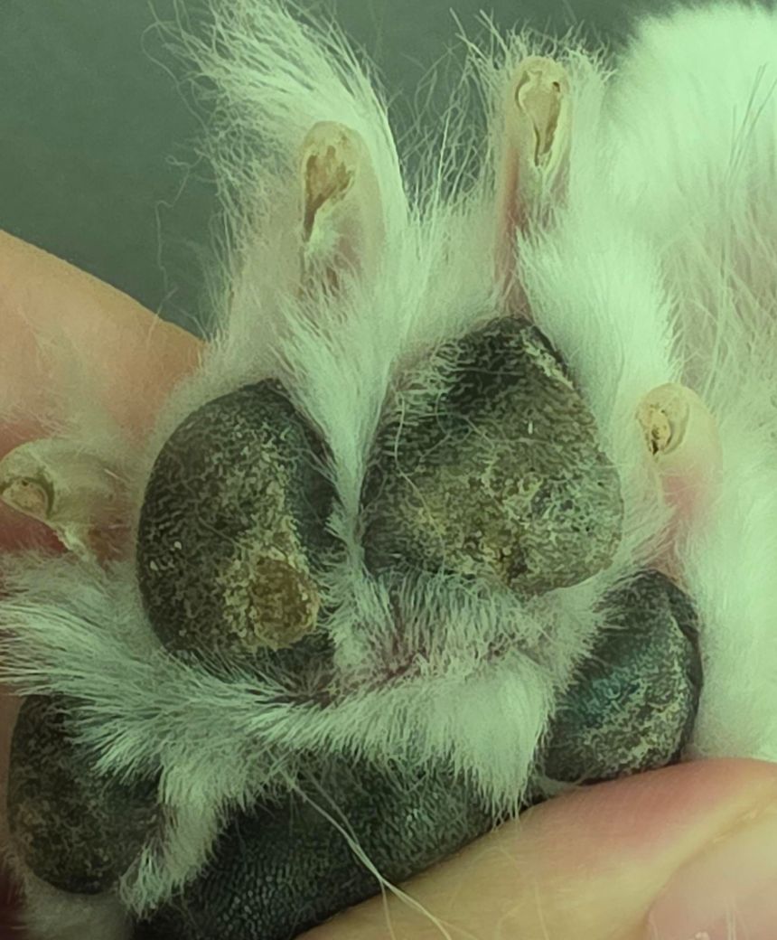 이와 함께 과도한 산책이나 콘크리트 바닥 걷기를 줄이고, 실내 바닥이 미끄럽지 않게 유지해주는 것도 도움이 됩니다. 발바닥이 지속적으로 딱딱하거나 갈라지는 경우, 내분비 질환(특히 갑상선 기능저하증) 관련 검사를 병원에서 진행할 필요가 있습니다. 또한, 감염으로 인한 변색, 갈라짐, 통증 반응, 피가 섞인 균열이 보이면 이차 세균 감염이 동반된 것으로 볼 수 있으며, 이때는 국소 항생제 연고 또는 항생제 치료가 필요할 수 있습니다.