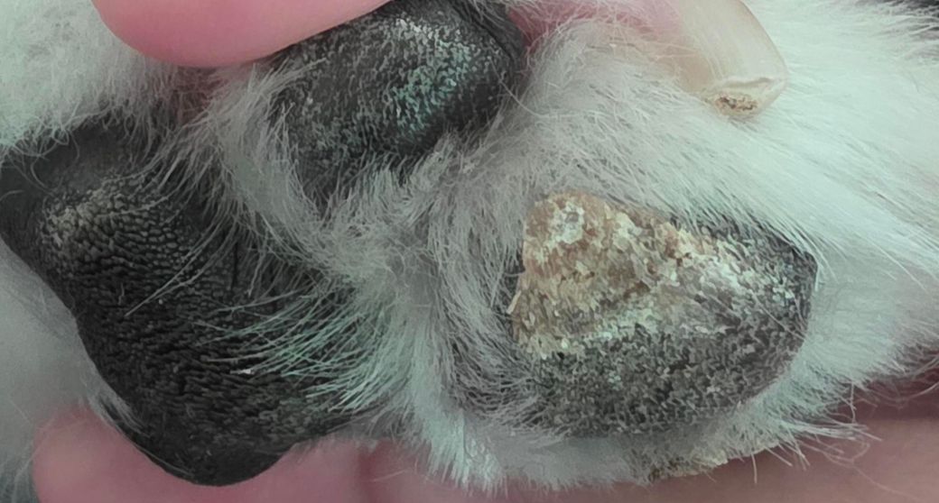 발바닥 패드의 표면이 거칠어지거나 딱딱한 각질이 덮인 경우, 말씀하신 각화증(과각화증) 가능성이 높습니다. 이는 발바닥 각질층이 비정상적으로 두꺼워지는 상태로, 주로 만성적인 마찰, 잦은 산책, 건조한 환경, 내분비 이상(예: 갑상선 기능저하증, 쿠싱증후군), 노화 등과 관련되어 나타납니다. 간혹 장기간 슬리퍼나 매트 위에서 걷는 생활습관으로도 패드가 마찰에 적응하면서 단단해질 수 있습니다.