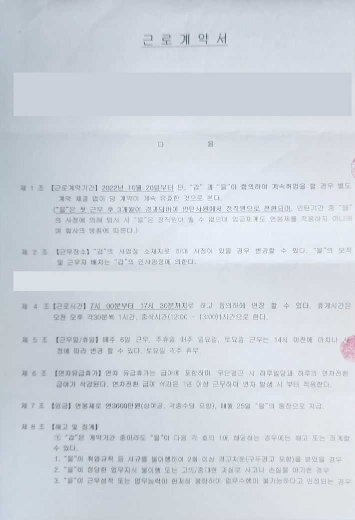 위 사항인데요, 계약 후 6개월 정도 후 3600에서 3800으로 급여 인상이 있었습니다. 계약서는 다시 작성하지 않았습니다.