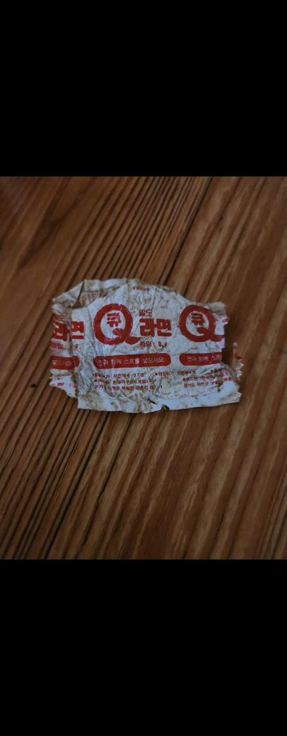 와 Q라면이네요. 제가 아는게 맞다면 1980년대에 출시된 라면인걸로 알고 있습니다. 꽤 오래전에 누군가가 학교 주변에 버린거 같네요