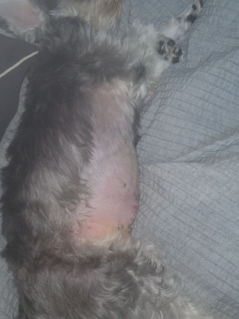 출혈에 의한 혈복이나 복막염에 의한 복수 가능성을 고려해야 하지만 대부분은 수술해서 고생했다고 보호자가 많이 먹여서 그런 경우가 대부분입니다. 하지만 정확한 확인을 위해 동물병원에 데려가서 확인 받으시기 바랍니다.