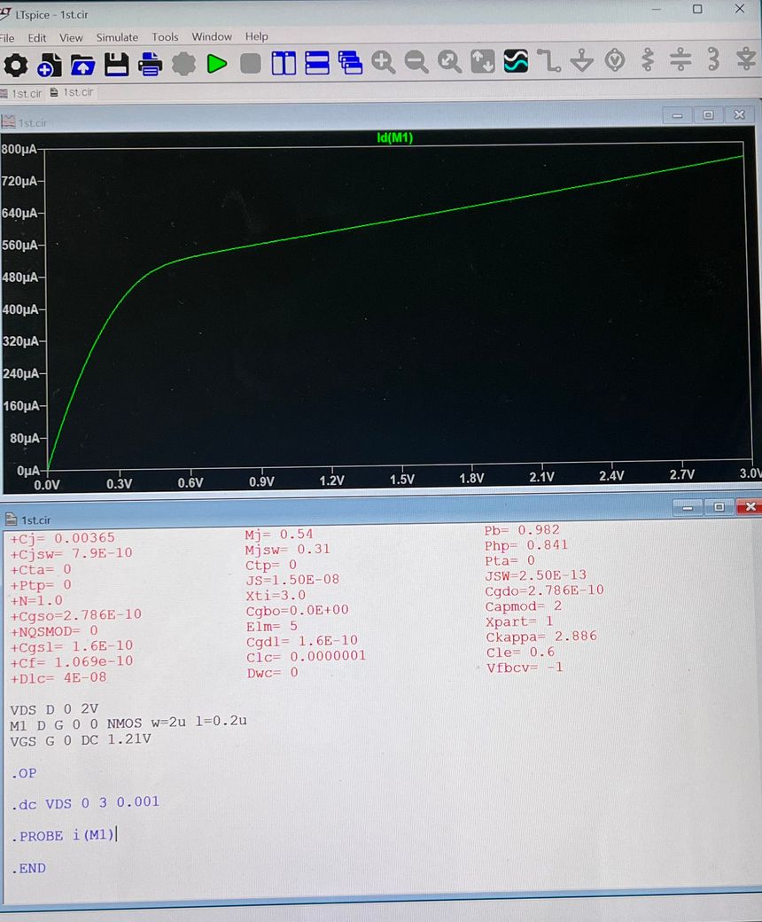 probe lx7(m1) .print d(i(m1)) 이 작동하지 않는다면 버전이나 mos 모델에 따라 함수 이름이 다를 수 있습니다.