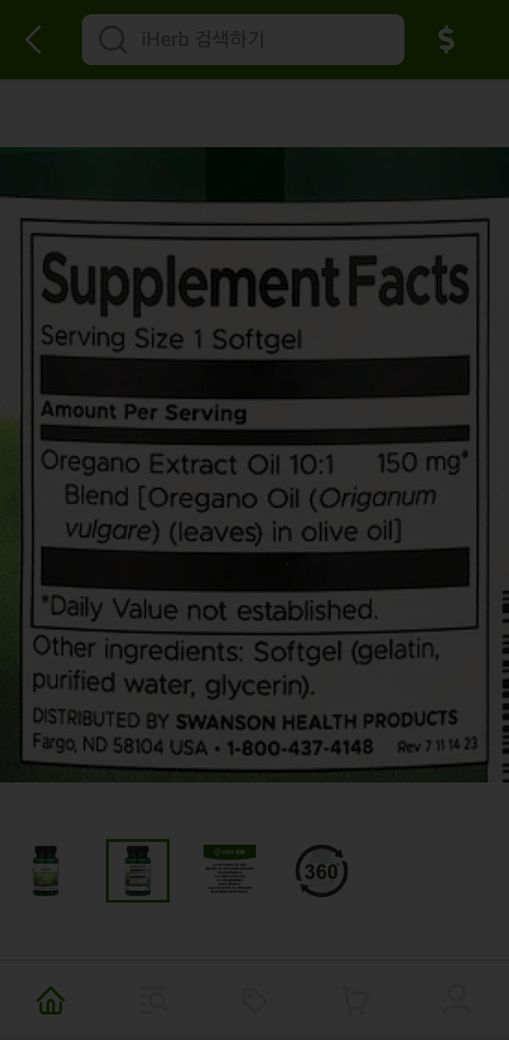 아래는 한알에 오레가노 오일이 150mg 이 맞나요