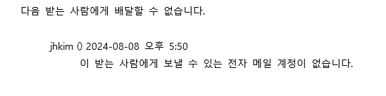 동일메일주소로 2시간전에는 잘 보내졌는데, 갑자기 받은 사람에게 보낼 수 있는 전자 메일 계정이 없다고 뜨거든요??