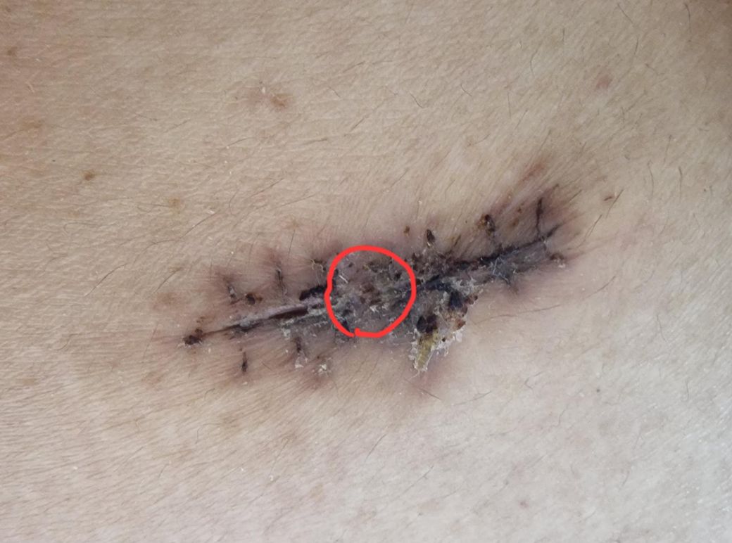 복강경 수술 후 재봉합한지 38일차인데 진물딱지가 점점 두꺼워져요
