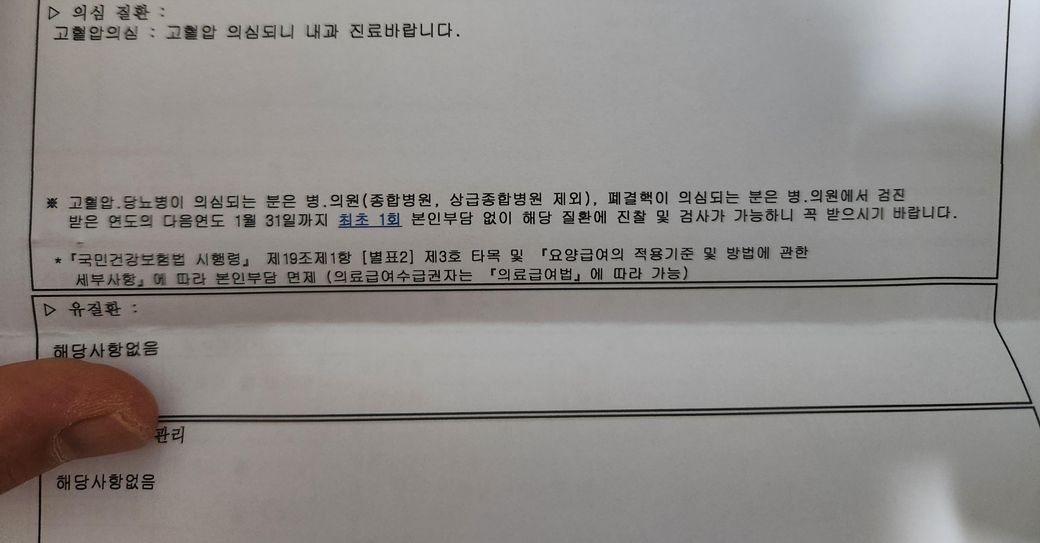 최초1회 본인부담 없이 해당 질환에 진찰 및 검사가 가능하다고 꼭 받으라고 적혀있는데요 내과 병원가서
