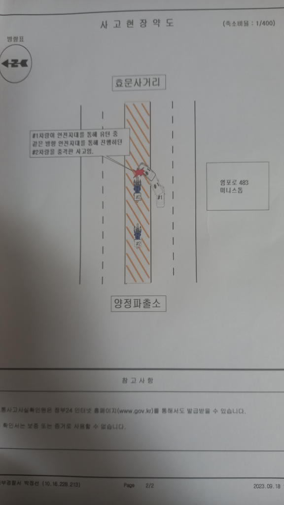다만, 님의 사고는 경찰서에 사고처리가 된 사건으로 사고내용이 전혀 다른 사고입니다.
