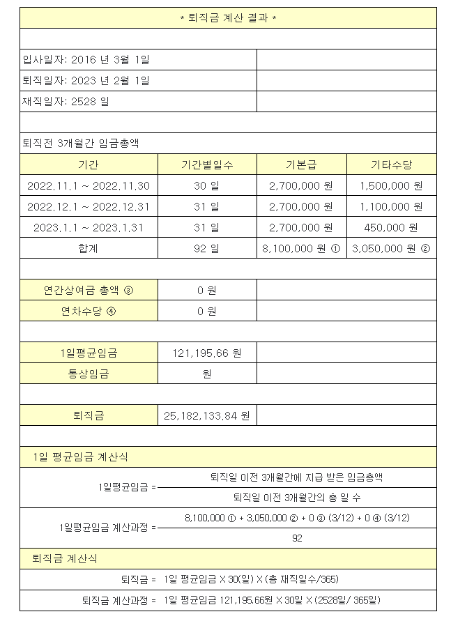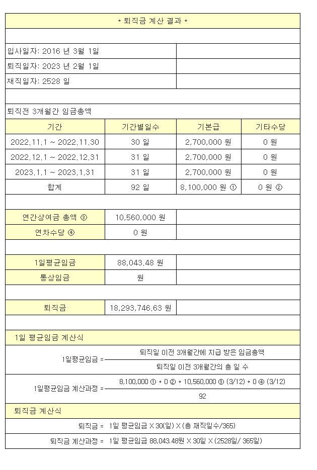 퇴직금계산 중인데 조언 부탁드립니다.
