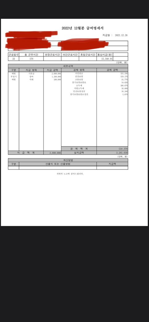 12월 급여 270만원+상여110만원