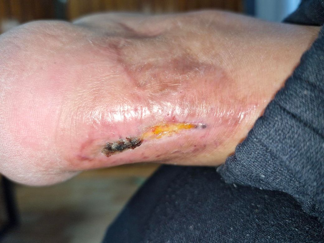 사진상으로는 아직 상처가 완전히 차오르는 “회복 단계”로 보이며, 발목은 혈행이 느려 회복이 더딜 수 있습니다.