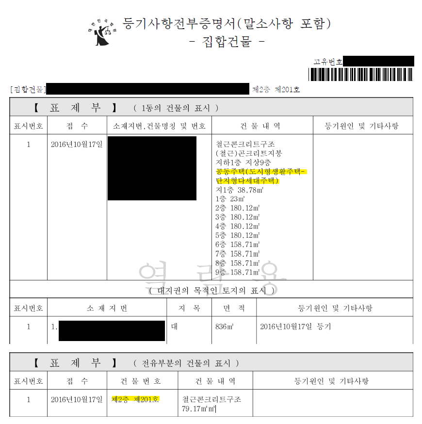 그래서 건축물대장을 확인해보니 오피스텔이라 안심하고있었는데, 혹시나 하는마음에 등기부등본을 확인해보니