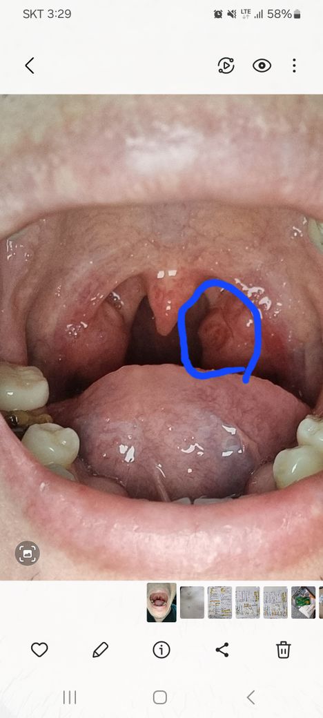 편도가 큰편이라고 하던데 편도에 저런 빨갛게 상처가 있는데 정상인가요