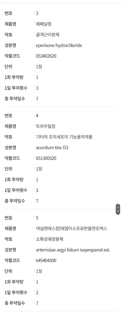 현재 사진속 약을 연달아 복용을 한 경우 하루 최대 용량을 넘는 것은 아니기에 크게 문제가 되지는 않으나, 근이완제가 있어 몸이 나른하거나 졸음이 오는 경우가 있을수 있기에 운전이나 기계조작시에는 주의를 요합니다.