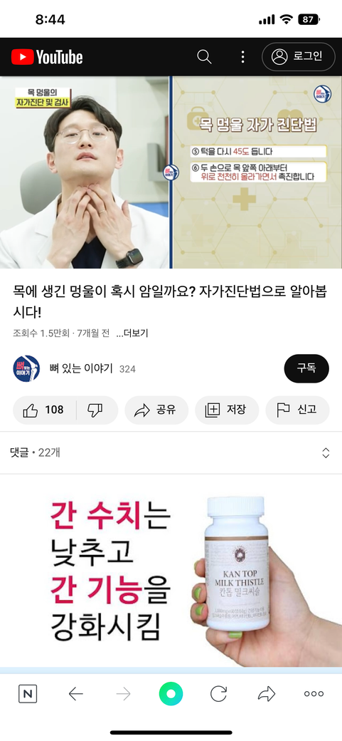 저부분에 저렇게 턱을 들었을때 뭔가 만져지고 약간 통증있아요