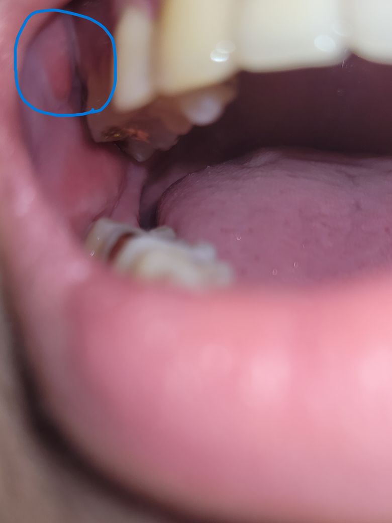 사진첨부) 위쪽 어금니 옆 볼에 살이 튀어나와 있습니다