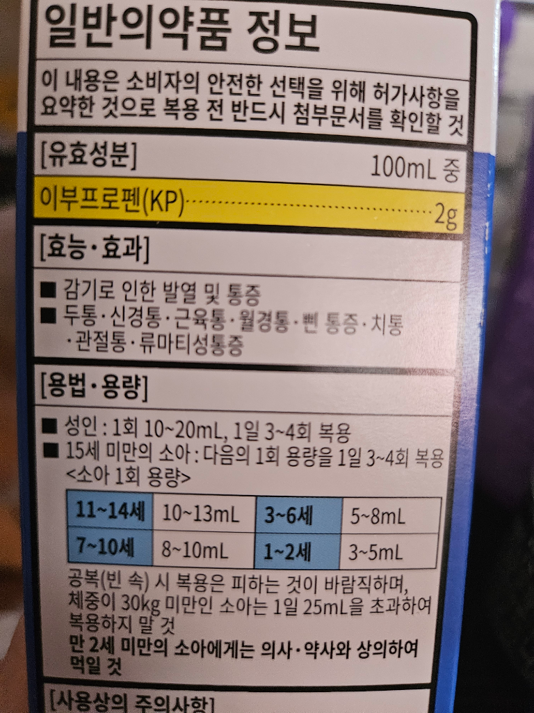 다만 부루펜시럽은 소아용이므로, 성인의 경우 1회에 20ml씩 복용해야 충분한 해열효과가 나타납니다.
