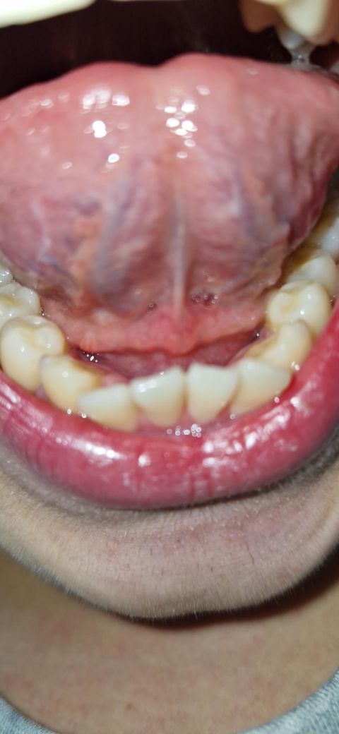 해당 부위는 sublingual fold 내지는 sublingual gland인데요 정상보다 살짝 부어있긴 하네요 구강내과가서 진료 받아보시기 바랍니다