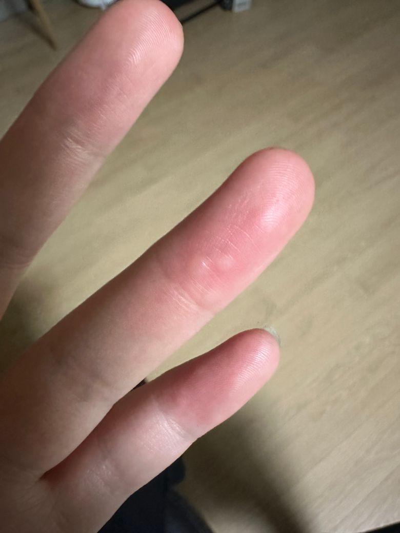 자고 일어나보니 손가락에 물집 같은 게 두개나 생겼어요... 만지지 않아도 간지러운데 이게 대체 뭘까요?