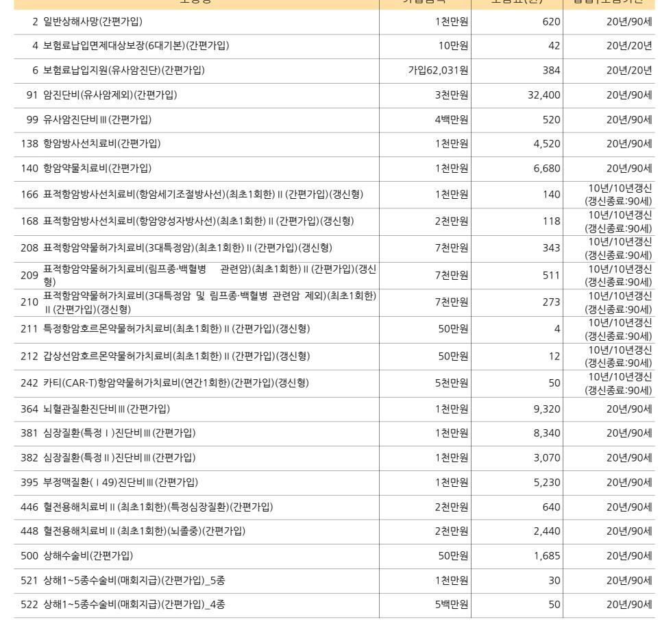 (제 보험 의도는 큰 병일 때만 확실히 받고 최대한 다이어트 해서 납부하고 싶은 생각입니다.)